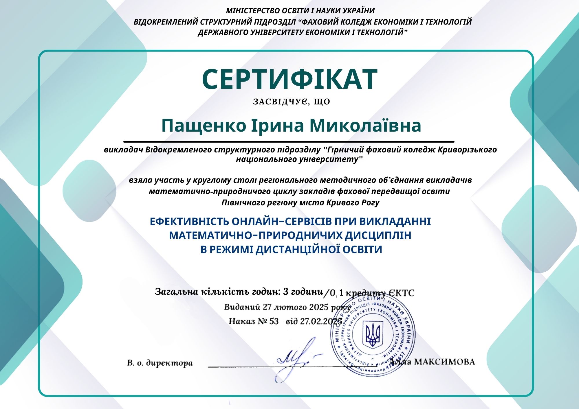 Кваліфікація: інженер-механік, спеціаліст вищої категорії.