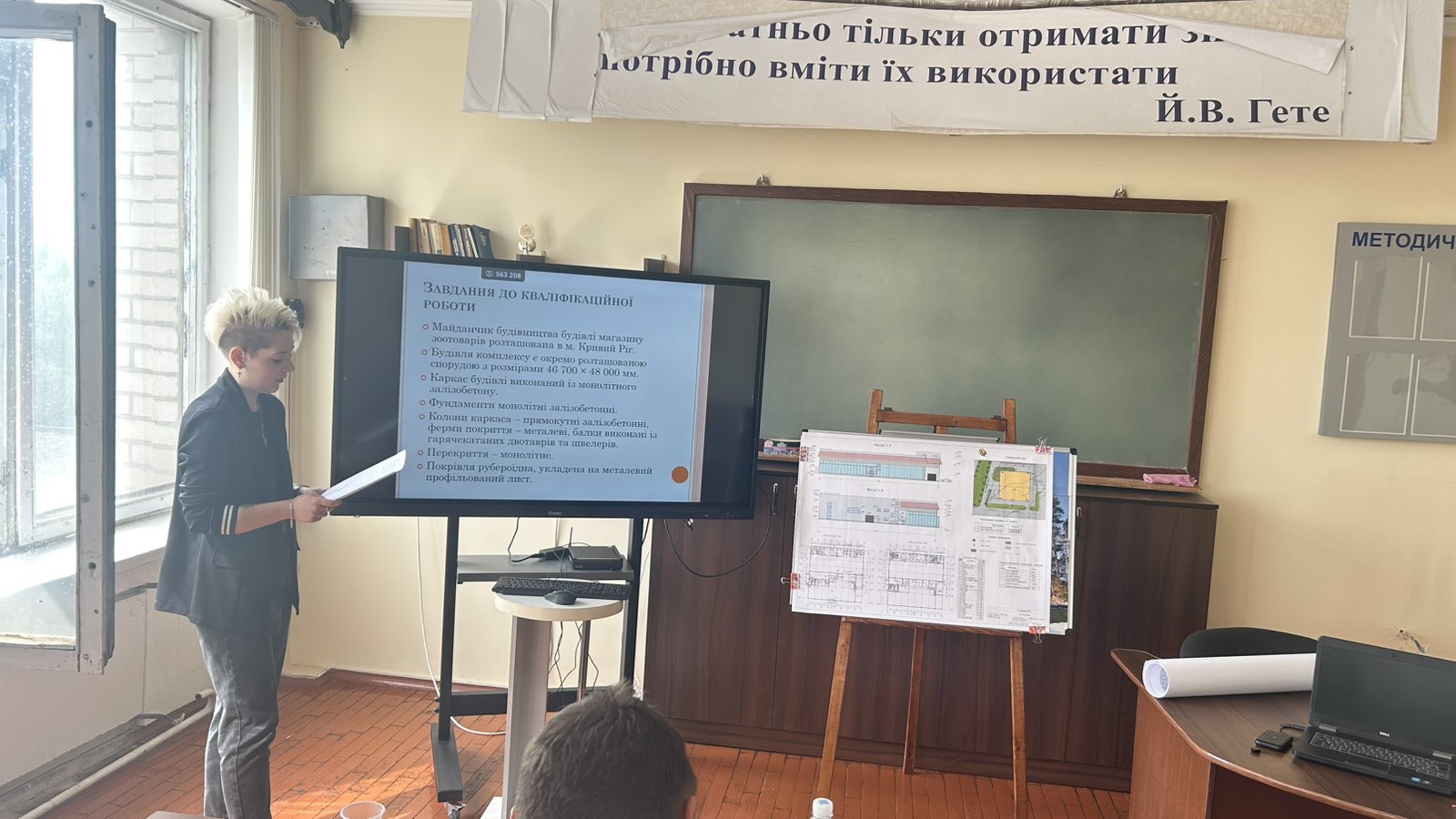 29.04.2025 в групі БЦ-22 1/9 відбувся захист курсової роботи з дисципліни «Технологія  і організація будівельного виробництва» (керівник викладач спеціальних дисциплін Горбунова О.В.). Під час захисту здобувачі освіти презентували свої курсові роботи й доповіді, супроводжуючи їх показом презентацій, а також надавали відповіді на запитання, поставлені членами комісії.