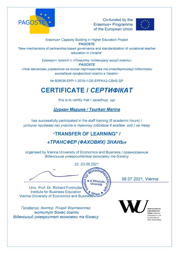 - курси підвищення кваліфікації та підготовки до сертифікацій.