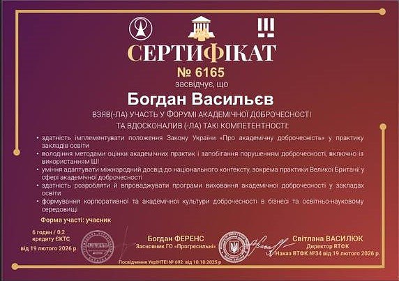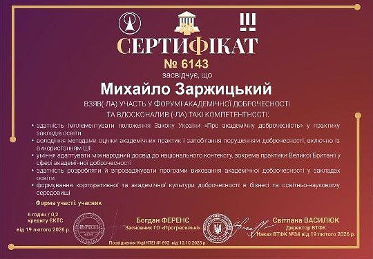 Захід проведено в межах програми академічної мобільності закладів освіти, спрямованої на популяризацію доброчесних практик і розвиток культури академічної доброчесності у ЗФПО.