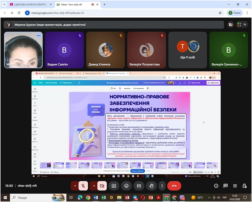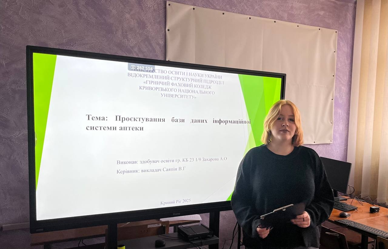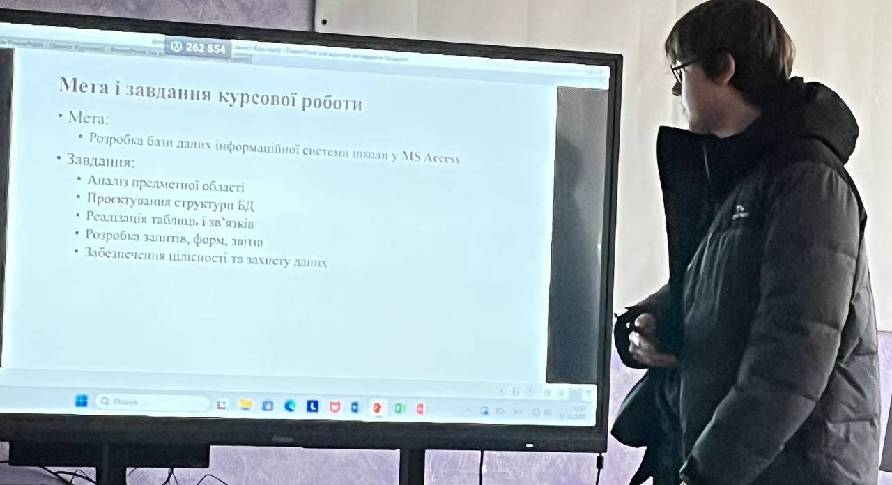 17 грудня 2025 року відбувся захист курсових робіт з дисципліни “Організація баз даних та їх захист” студентами групи КБ-23 1/9 спеціальності “Безпека інформаційних та комунікаційних систем”. Здобувачі освіти показали високий професійний рівень та ґрунтовну підготовку.