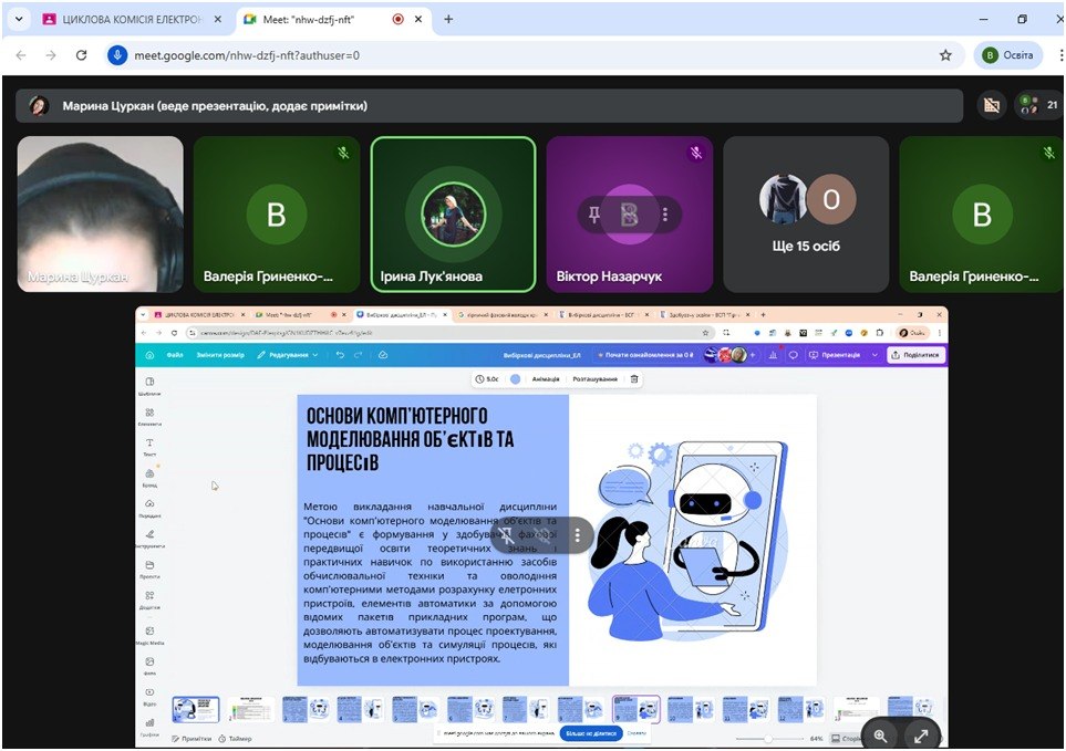 Конструювання, контроль якості ВЕТ і САПР, Комп’ютерне моделювання ВЕТ, Джерела електроживлення, Раідоавтоматика, Основи систем автоматизованого проектування, Обчислювальна техніка та програмування, Комп’ютерне проєктування