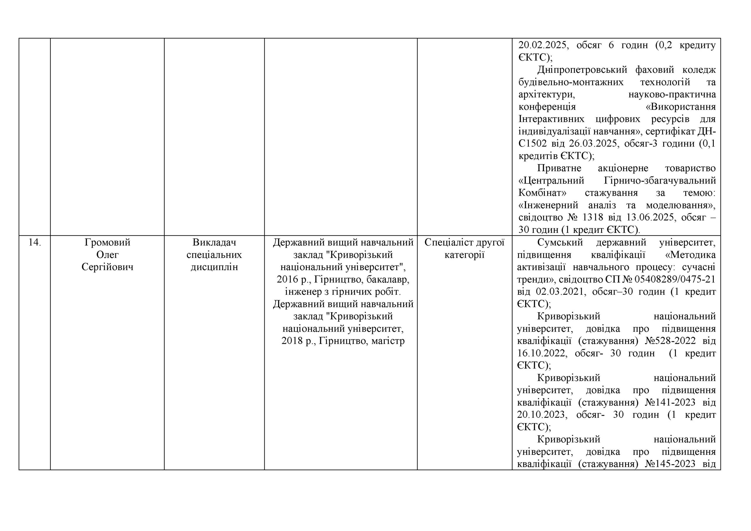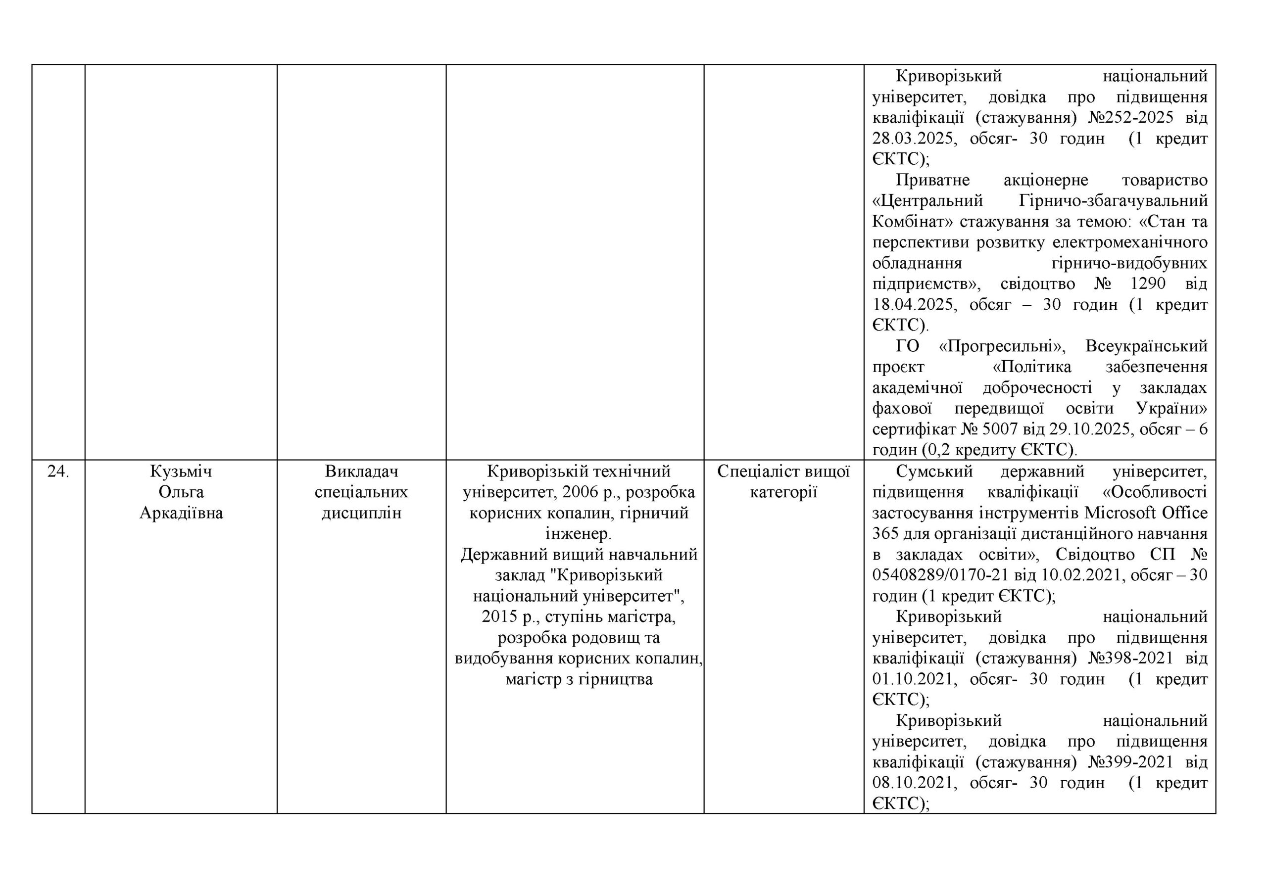 Конкурсний відбір на заміщення посади директора ВСП “Гірничий фаховий коледж КНУ”