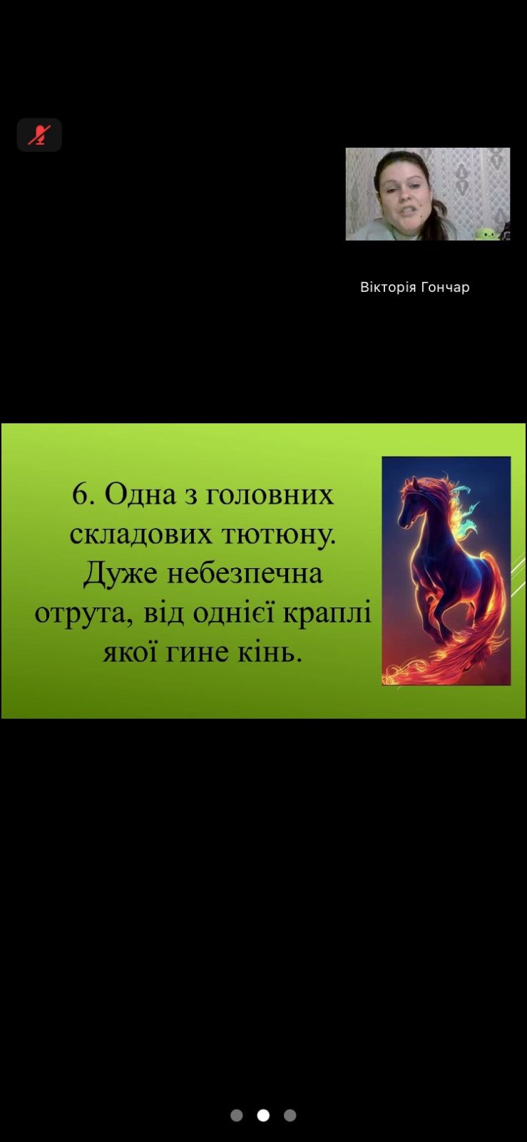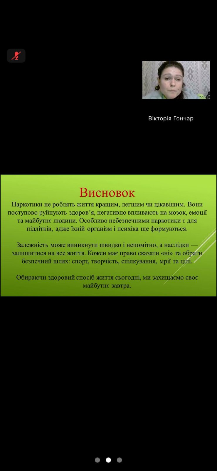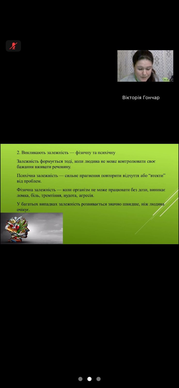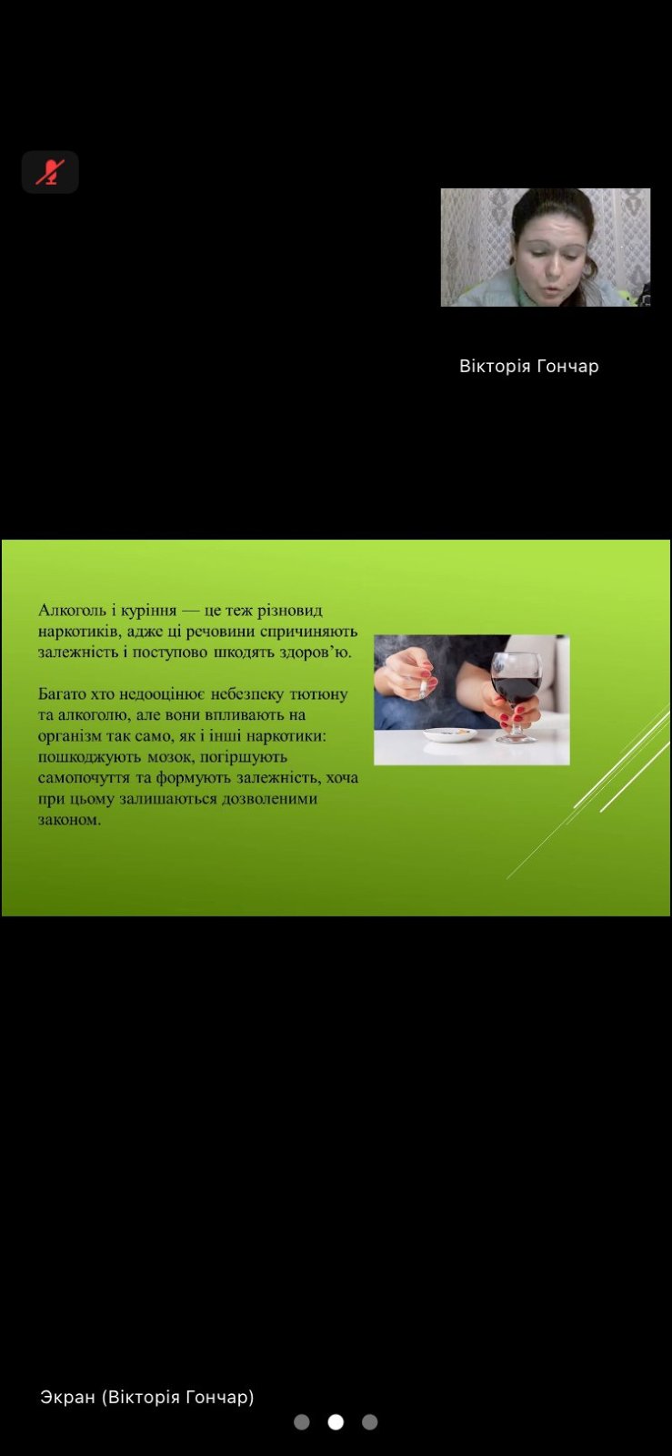 Захід провела практичний психолог коледжу Вікторія Гончар, яка детально ознайомила студентів із серйозними загрозами, що несуть наркотичні речовини для фізичного й психічного здоров’я підлітків. Окрему увагу було приділено негативним наслідкам тютюнопаління та вживання алкогольних напоїв, а також важливості свідомого вибору та вміння сказати «ні».