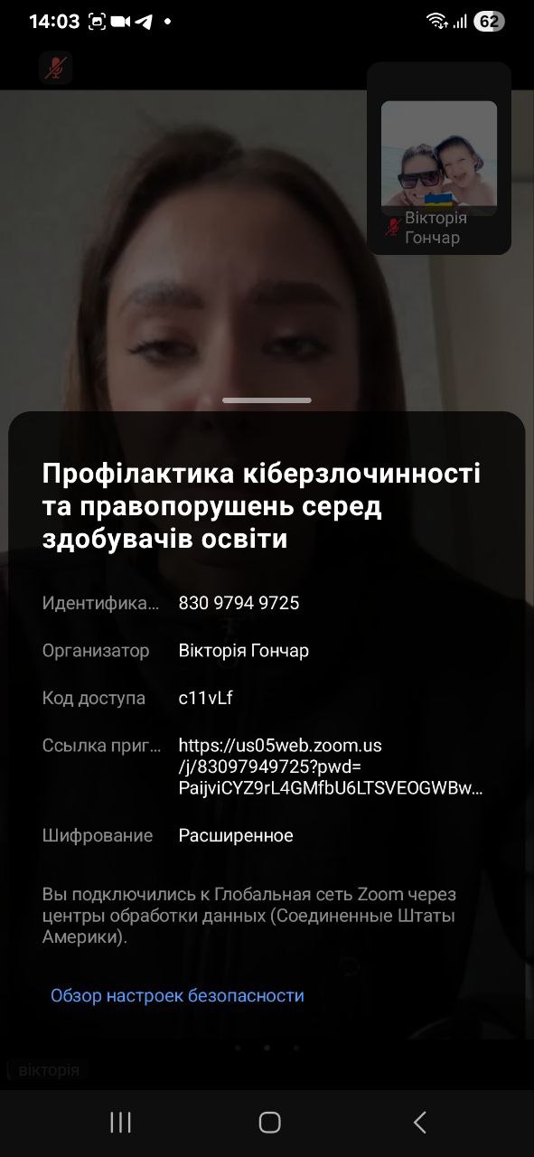 Під час заходу Кучеренко Вікторія розповіла про основні види кіберзлочинів, правила безпечної поведінки у соціальних мережах та відповідальність за порушення законодавства у цифровому просторі.