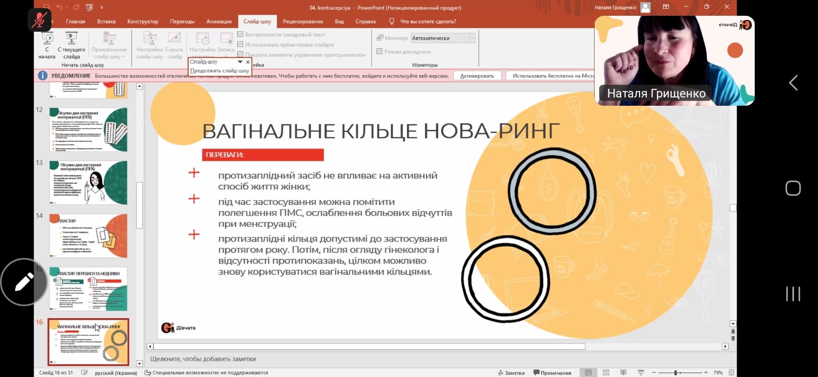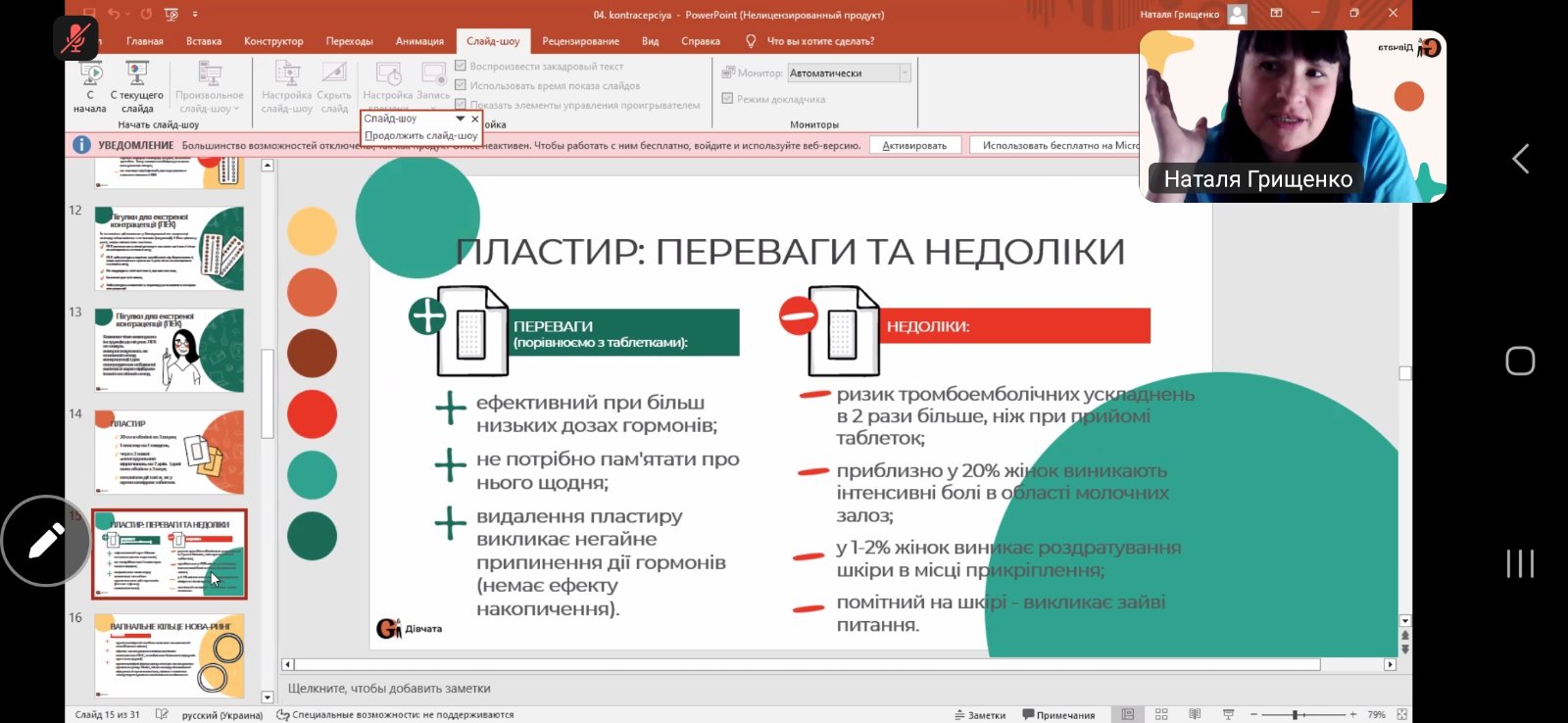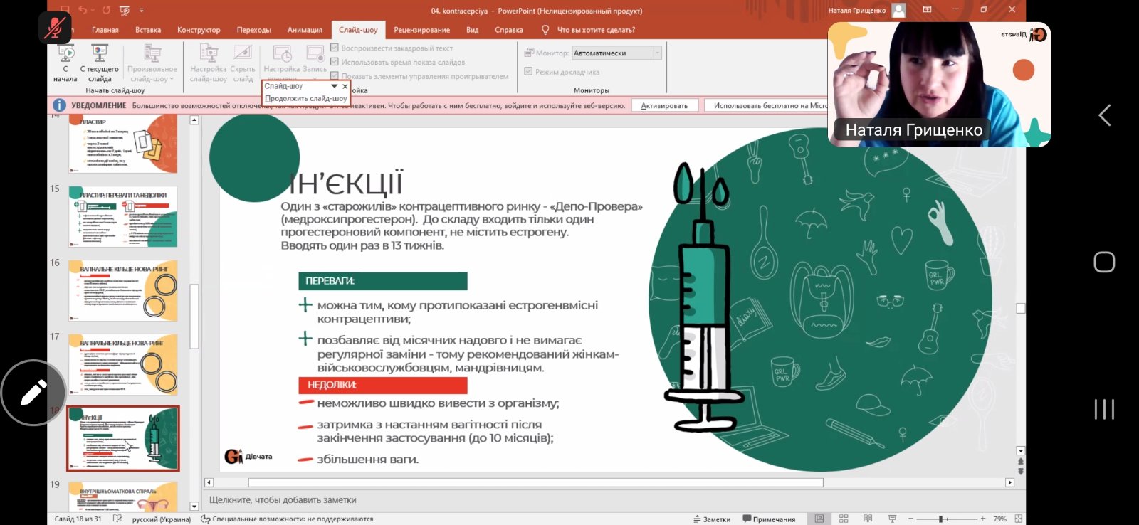 Зустріч провела представниця громадської організації «Дівчата» — Наталя Грищенко. Під час заходу учасники отримали достовірну та доступну інформацію про різні види контрацепції, їх ефективність і переваги, адже відповідальне ставлення до власного здоров’я є надзвичайно важливим.