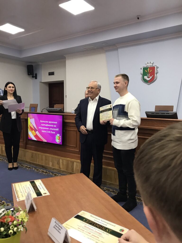 30 вересня 2025 року у залі засідань виконкому Криворізької міської ради відбулося урочисте вручення Головою Ради оборони міста Олександром Вілкулом сертифікатів для отримання іменних стипендій імені В.І.Гутовського та О.М.Поля кращим здобувачам освіти навчальних закладів, серед яких був відзначений наш здобувач освіти гр.ГР-22 1/9 – Басараба Дмитро Артурович.