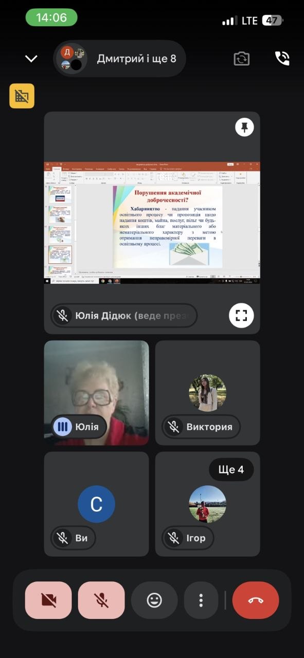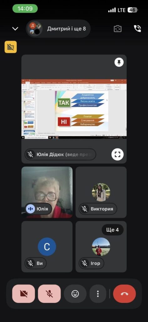 Під час виховної години були розглянуті питання дотримання академічної доброчесності здобувачами освіти під час навчального процесу. Особлива увага була приділена основним показникам порушення академічної доброчесності (академічний плагіат, фабрикація, фальсифікація, списування, обман, хабарництво тощо) та наслідкам у разі порушення академічної доброчесності.